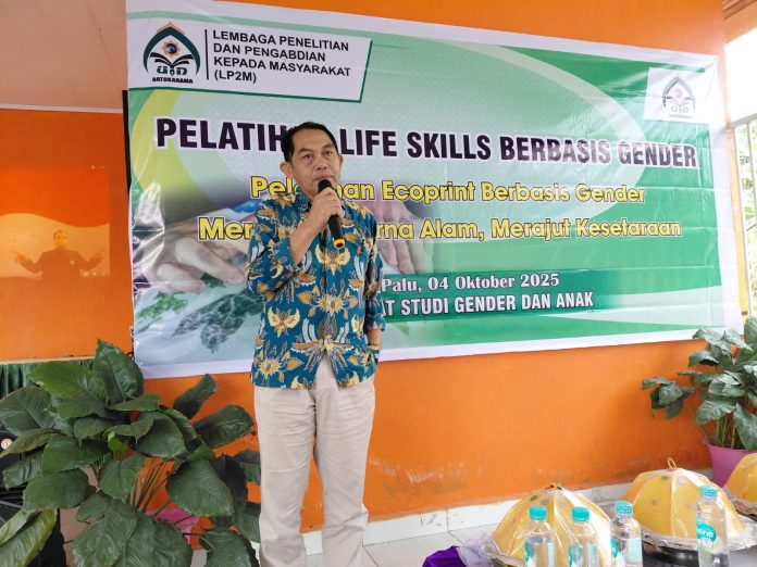 LP2MUINDATOKARAMA.ac.id | Palu, Lembaga penelitian dan pengabdian kepada masyarakat (LPPM) melalui Pusat studi gender melakukan pelatihan ecoprint di Petobo, Palu, Sabtu, 4/10/2025.